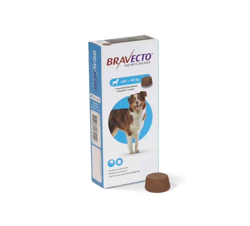 Το Bravecto είναι χάπι για τσιμπούρια και ψύλλους μπορεί να χορηγείται σε σκύλους ηλικίας άνω των 8 εβδομάδων και βάρους μεγαλύτερο των 2 κιλών. Ένα δισκίο προσφέρει κάλυψη για διάστημα 12 εβδομάδων (3 μηνών)